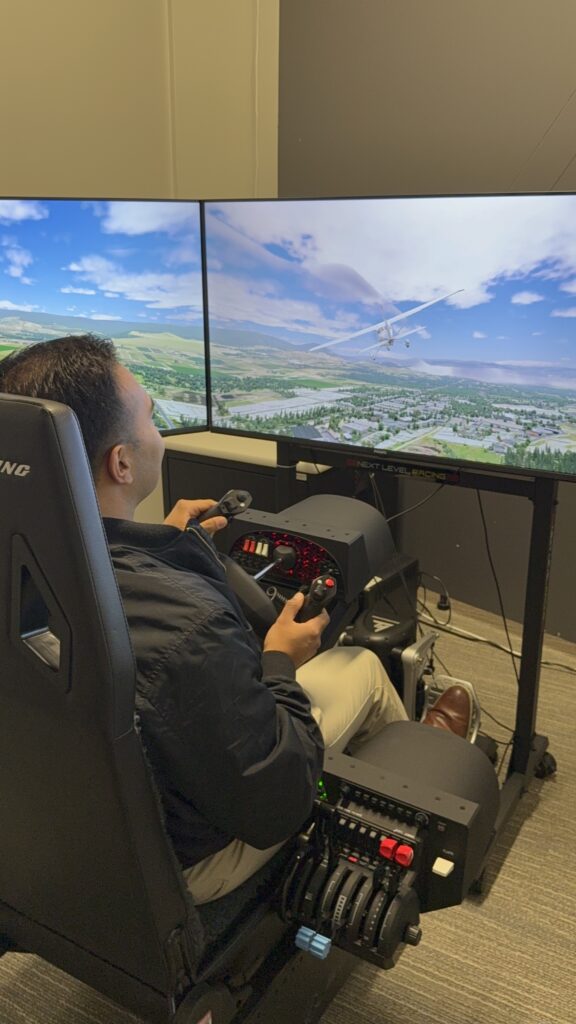 You’ll take off from YLW, fly over the valley, make turns, adjust altitude, and try your hand at take-off and landing. It’s as close as you can get to flying a real aircraft, all in a safe and welcoming environment.
