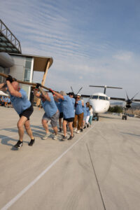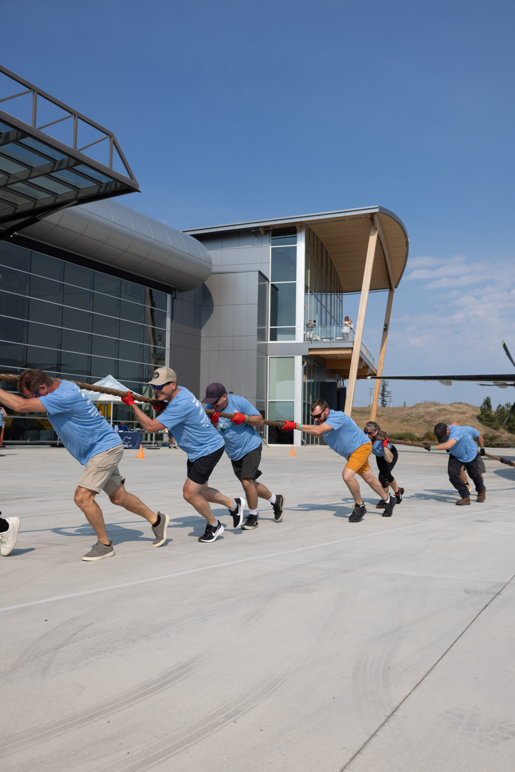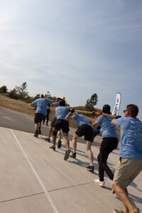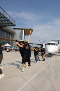 Kelowna, BC – September 18, 2025 – The KF Centre for Excellence welcomed the community for the return of Haul for Hope, Hope Air’s national fundraising event. More than 100 participants across six teams came together to haul a 67,000 lb plane 75 metres, raising over $30,000 in support of Hope Air patients who must travel far from home for vital medical care.